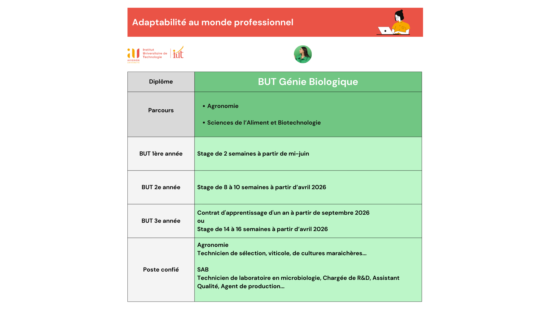 Scientific excellence, close supervision and project-based teaching are the key words of the team of the Biological Engineering Department of the IUT of Avignon University.